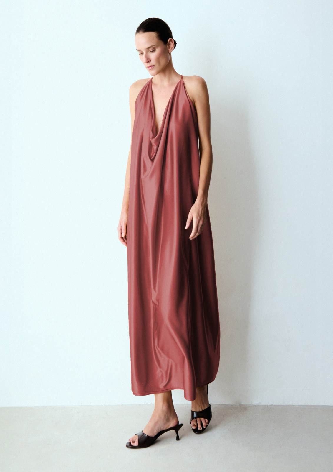 Totalmente forrado — inclusive nas mangas — com chiffon leve e suave, o vestido garante conforto ao vestir. As fendas laterais acrescentam fluidez e liberdade de movimento, tornando a peça ainda mais versátil. O fechamento posterior em formato de gota, com botão discreto, oferece praticidade e acabamento delicado ao decote.