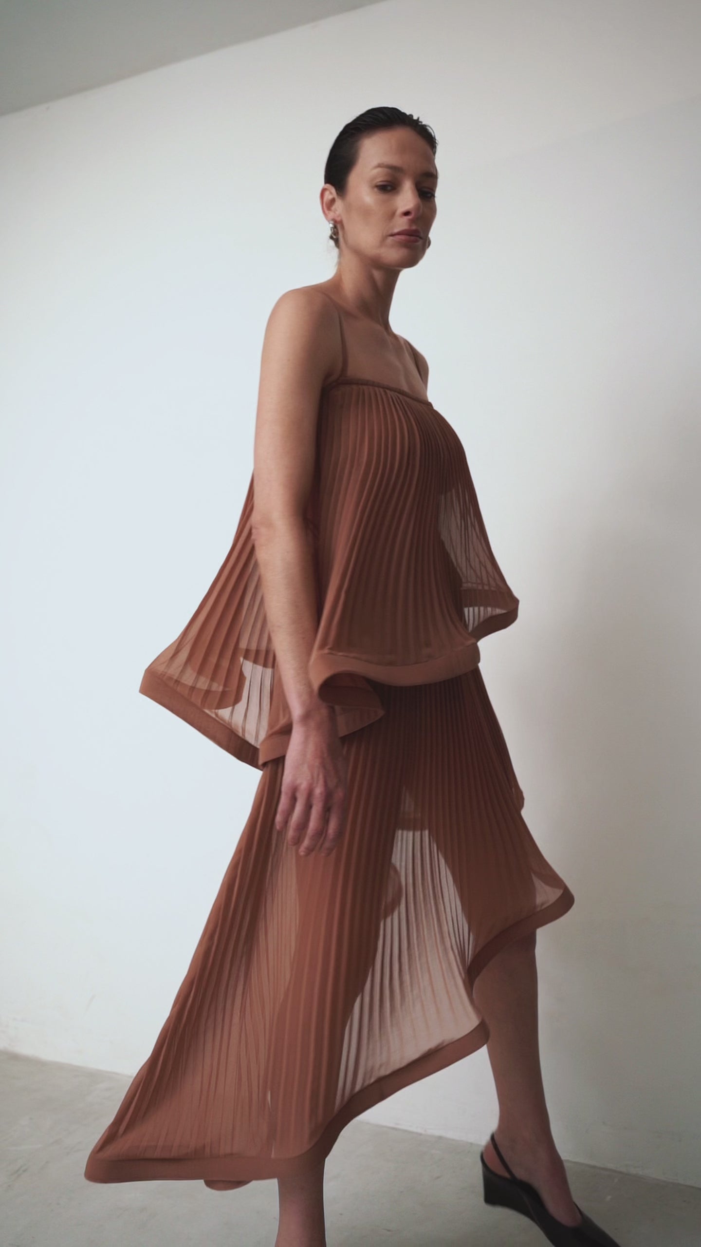 O Vestido Longuete Paetê Plumas é confeccionado em delicado paetê marrom, que confere um brilho sofisticado e elegante à peça. Sua modelagem reta proporciona um caimento estruturado.
