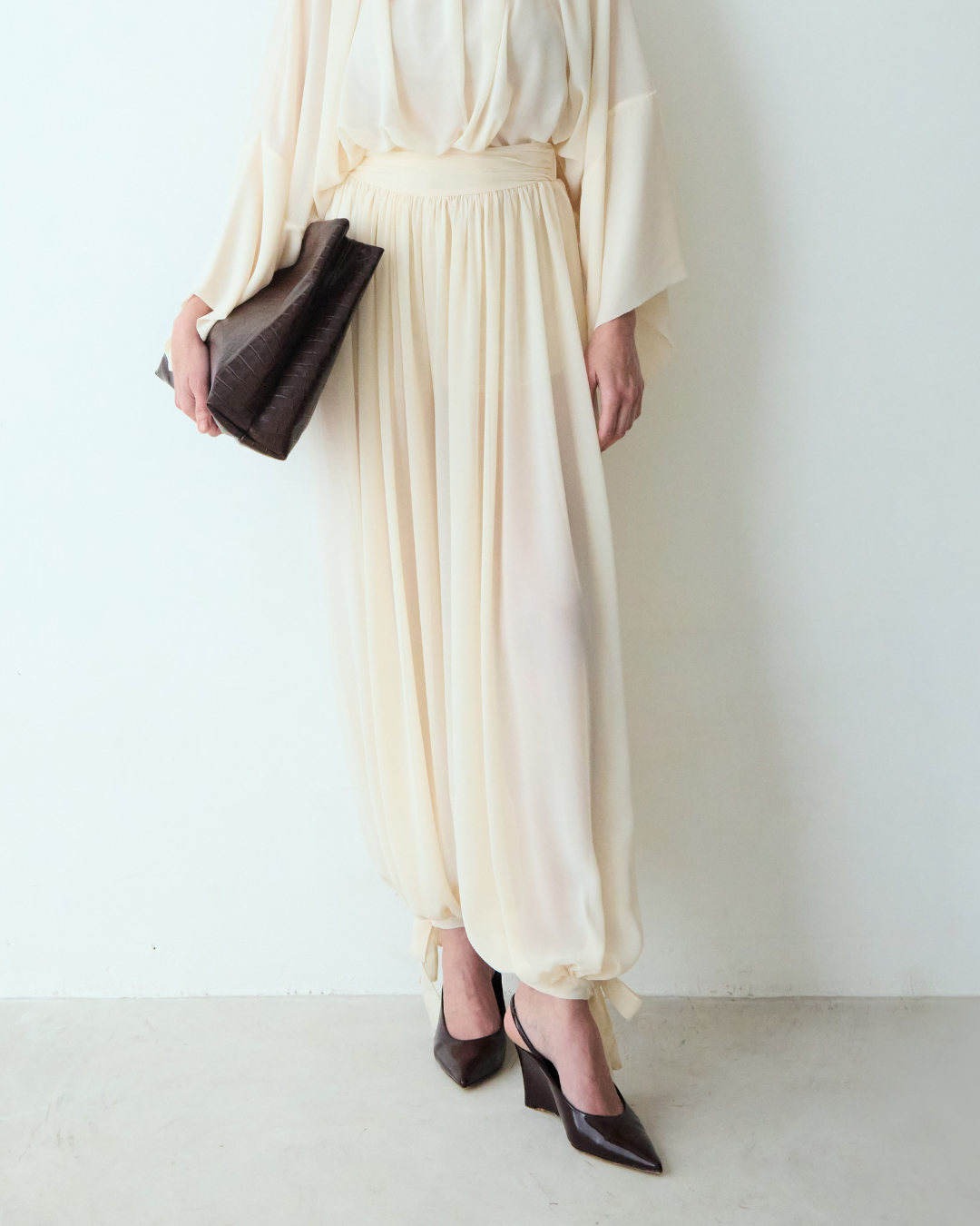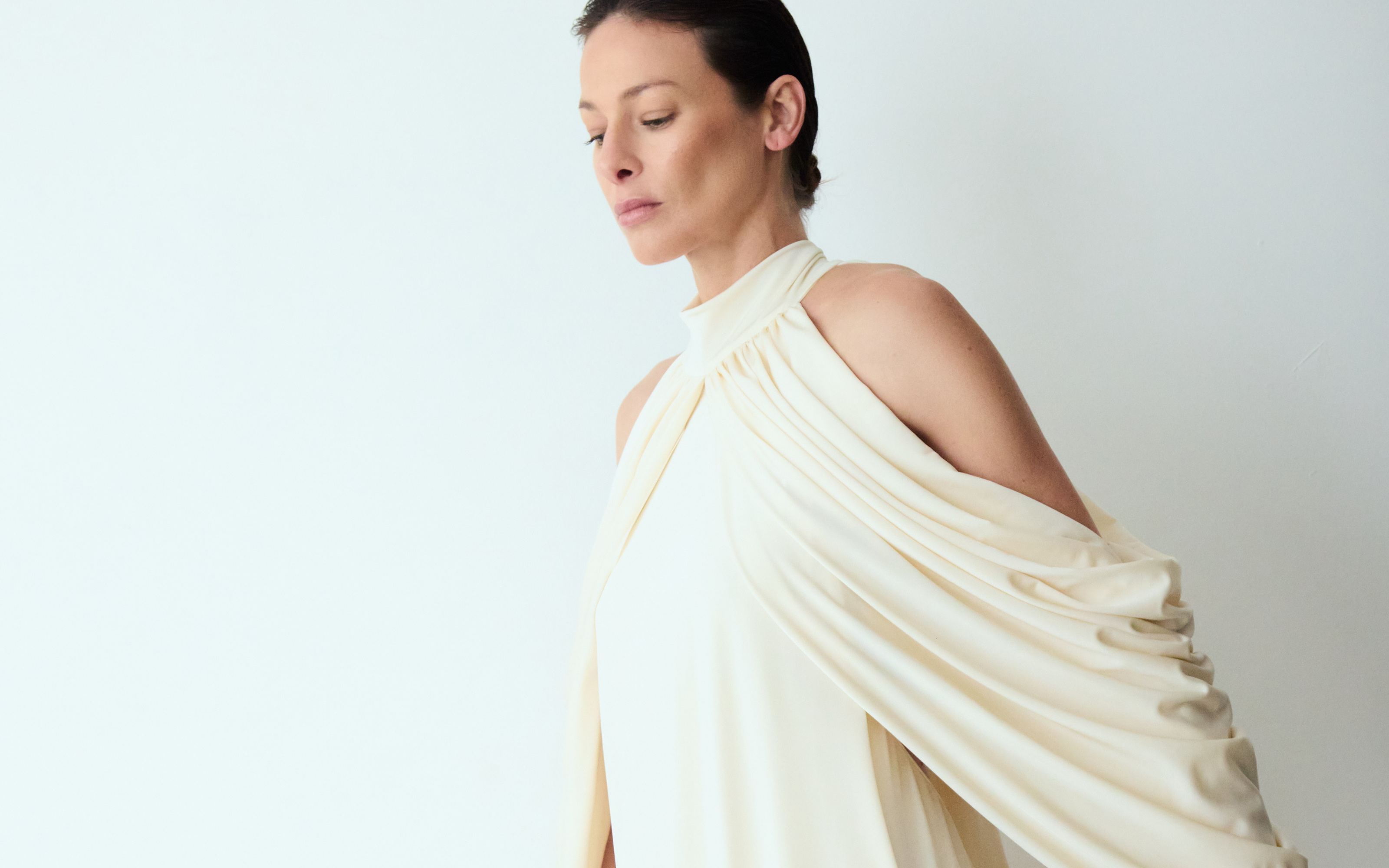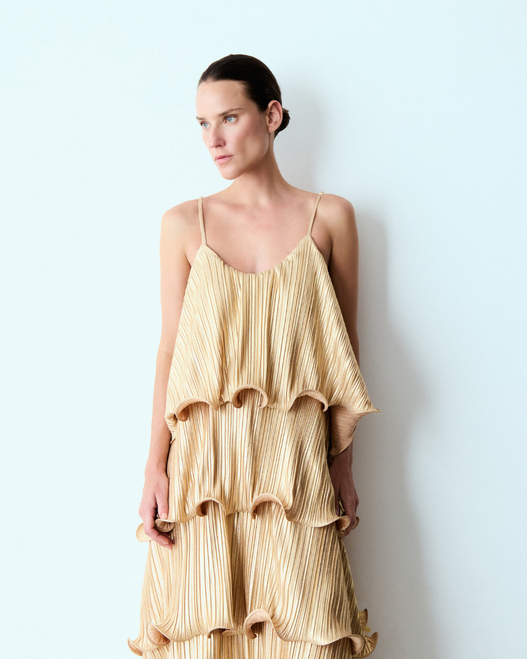 O Vestido Alga — clássico best-seller da marca — é relançado nesta coleção em nova tonalidade e acabamento.