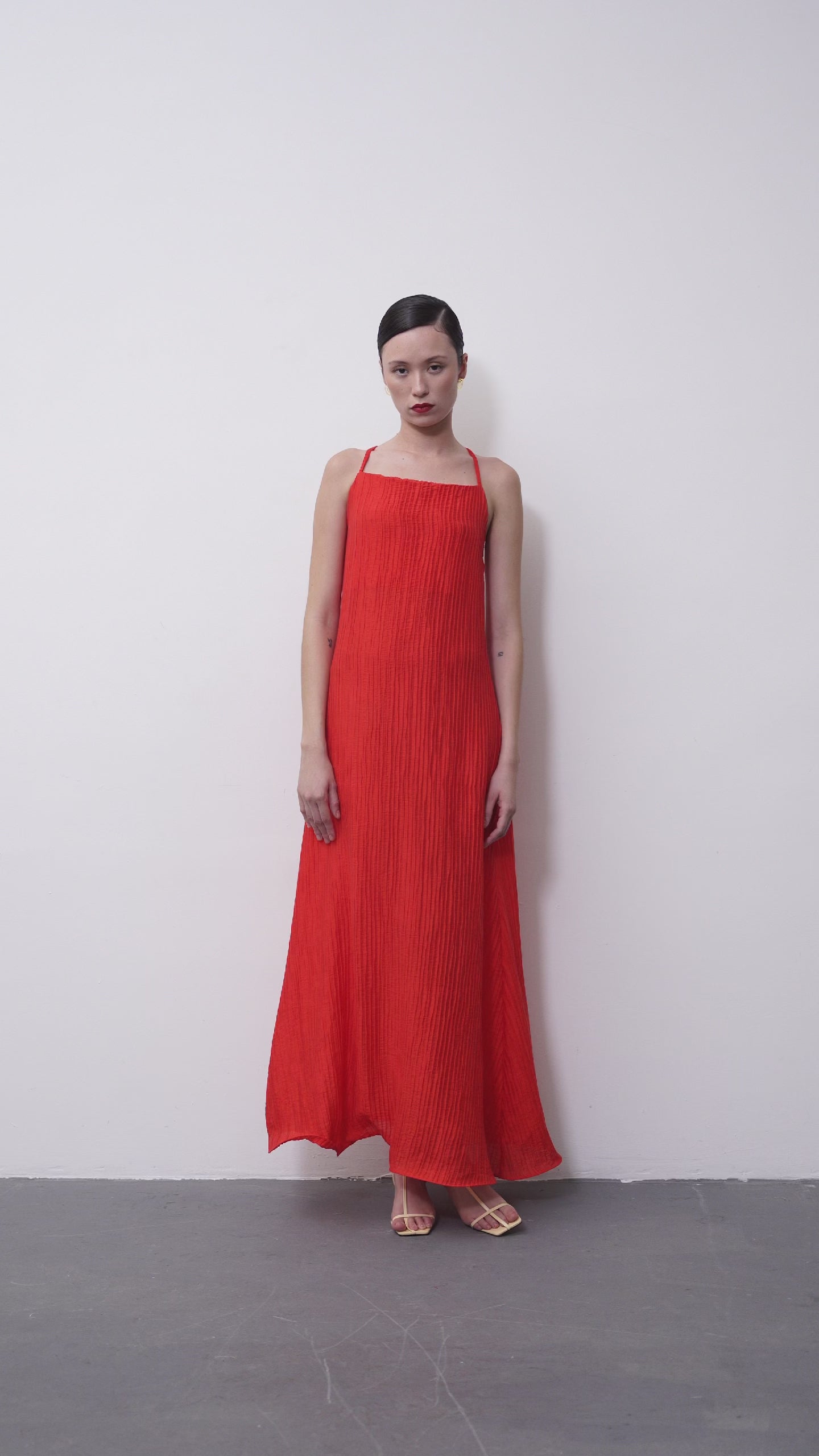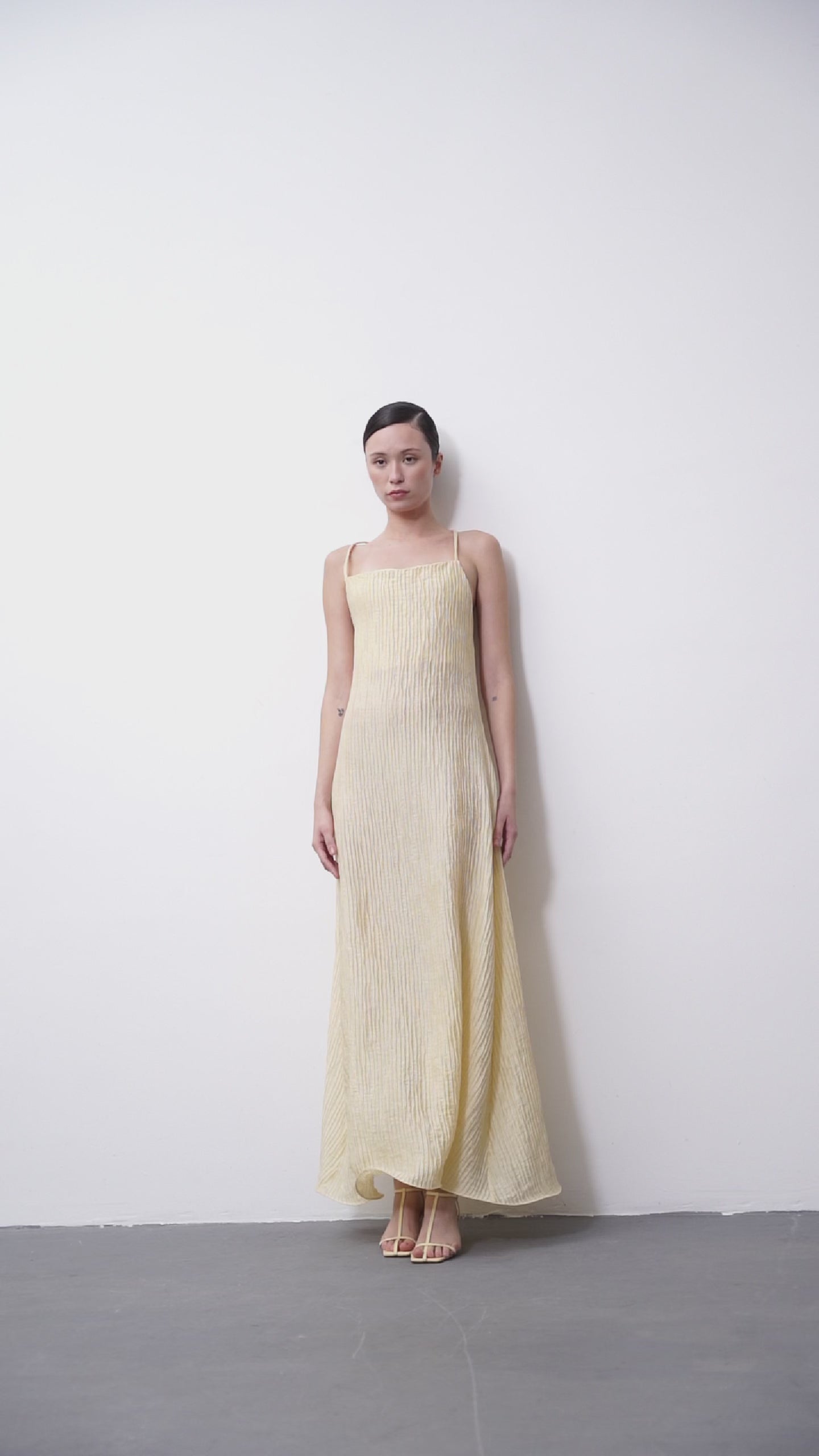 The "Jabour Ondas" dress is made from a sustainably sourced lyocell and polyamide blend fabric, providing lightness and freshness when worn. Its textured surface imitates the effect of delicate pleating, while its low tendency to wrinkle makes the piece a practical choice for both travel and everyday wear. The piece has a straight, light "A" cut, a straight neckline and a low-cut back, with adjustable straps. The piece comes with an optional peplum, making it a versatile product that allows for more than one way of wearing it.